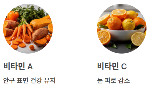 눈 건강은 식습관과도 밀접한 관련이 있습니다. 비타민 A, C, 루테인, 오메가-3와 같은 영양소는 눈의 피로를 줄이고 안구 표면 건강 유지에 도움을 줄 수 있습니다.