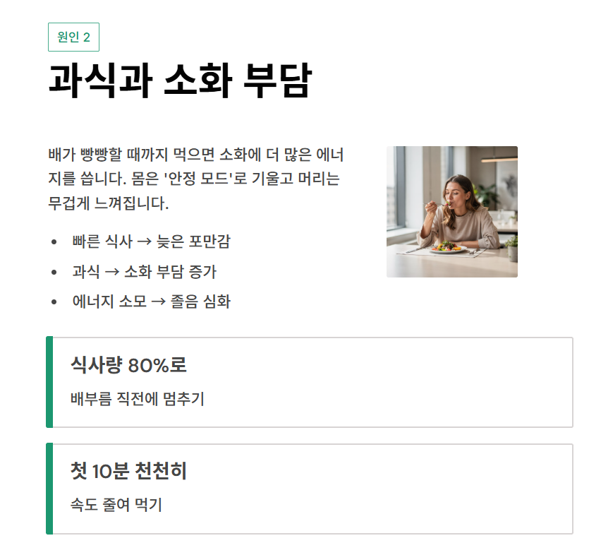3) 식곤증 원인 2: 과식과 소화 부담