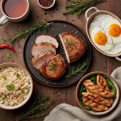 - 대표 음식: 돼지고기(특히 안심, 등심), 현미, 달걀, 닭가슴살