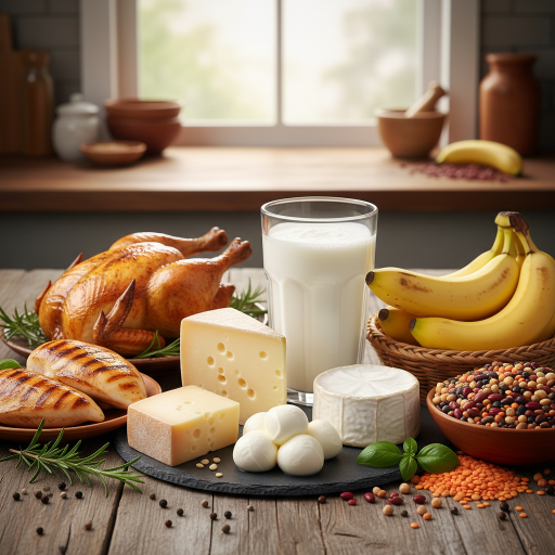- 대표 음식: 우유, 치즈, 닭고기, 바나나, 콩류