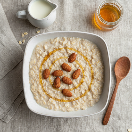 - 조합 추천: 오트밀 3스푼, 우유 또는 두유, 아몬드 5알, 꿀 약간