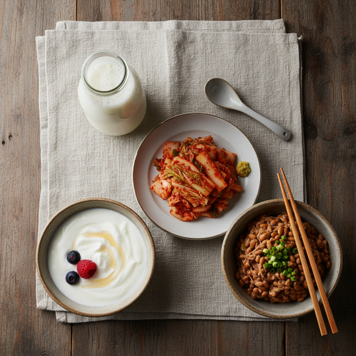 - 추천: 플레인 요구르트, 케피어, 김치(소량), 낫토