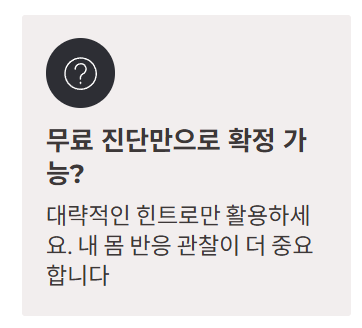 A. 확정이라기보다 “대략적인 힌트”로 보는 편이 안전합니다. 테스트는 참고용이고, 실제로는 내 몸 반응(소화, 피로, 수면 등)을 관찰하면서 맞춰가는 과정이 필요합니다.