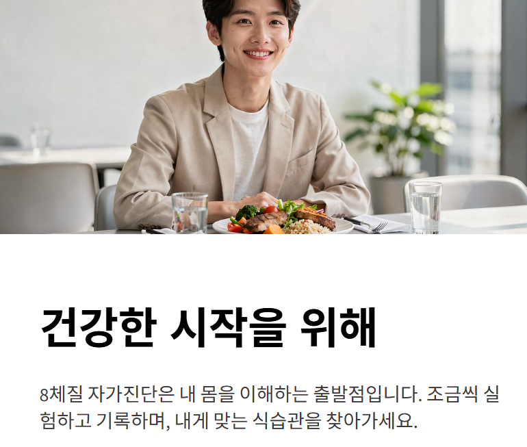 다만 여기서 중요한 건, 자가진단 결과표를 그대로 믿고 식단을 극단적으로 바꾸는 것이 아니라 “내 몸 반응을 관찰하는 기준”으로 쓰는 것입니다. 같은 체질로 분류돼도 개인의 생활 패턴, 수면, 스트레스, 활동량에 따라 소화력과 컨디션은 크게 달라질 수 있어요.